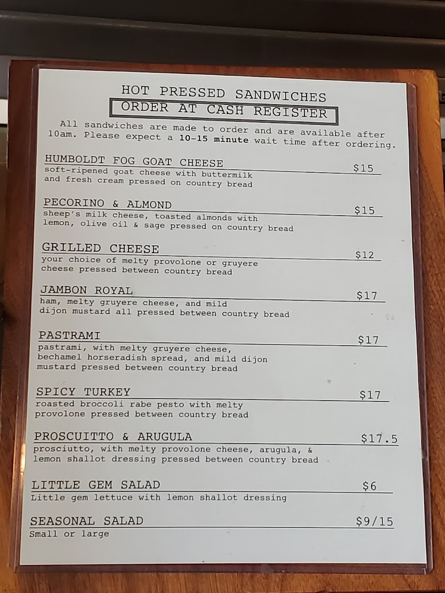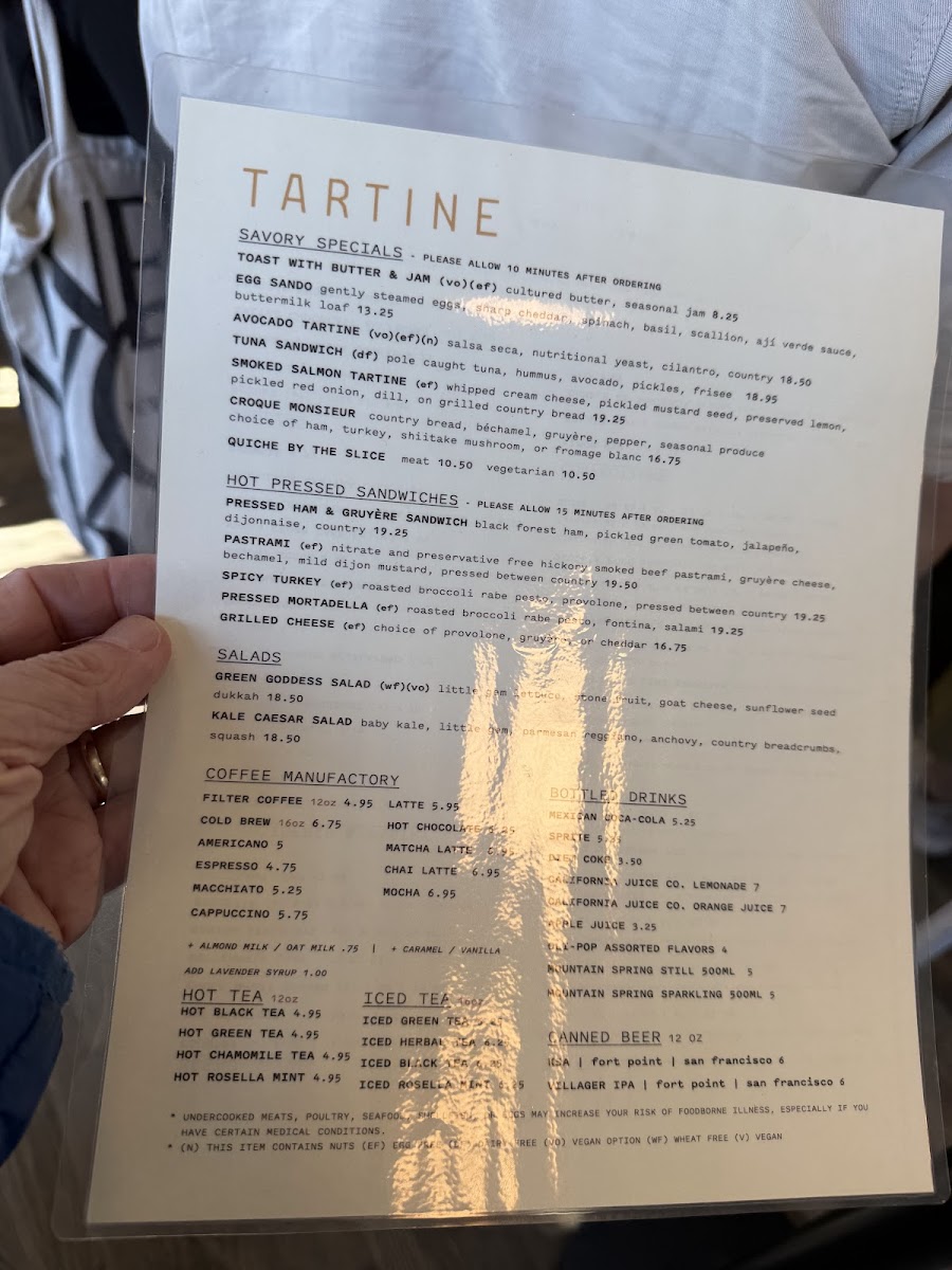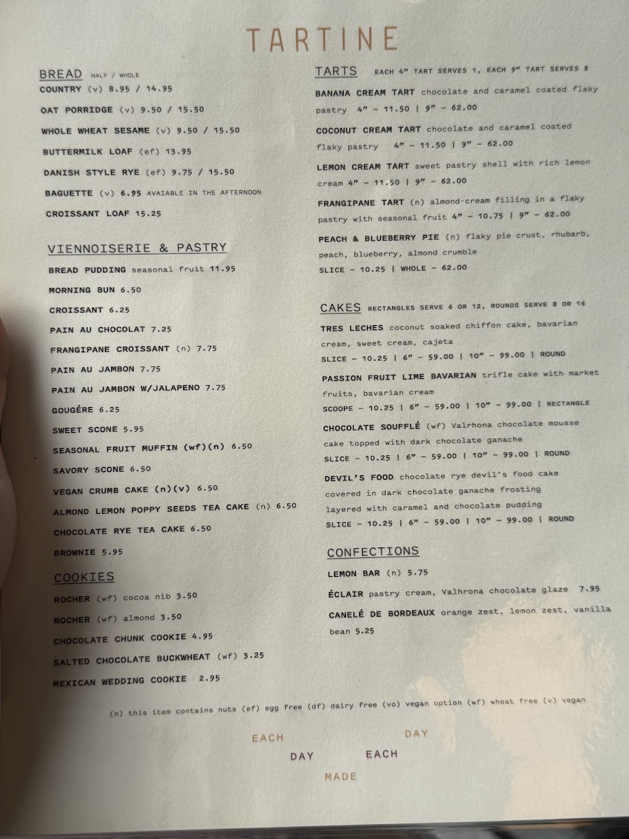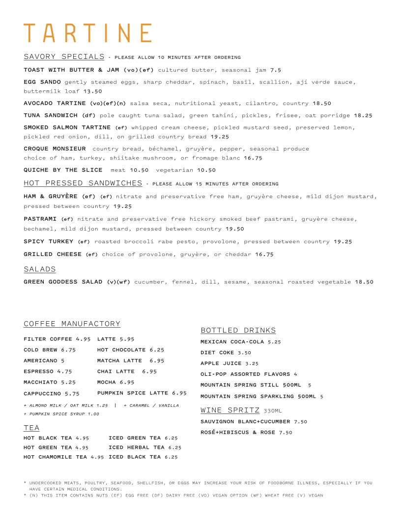 Tartine Bakery Menu